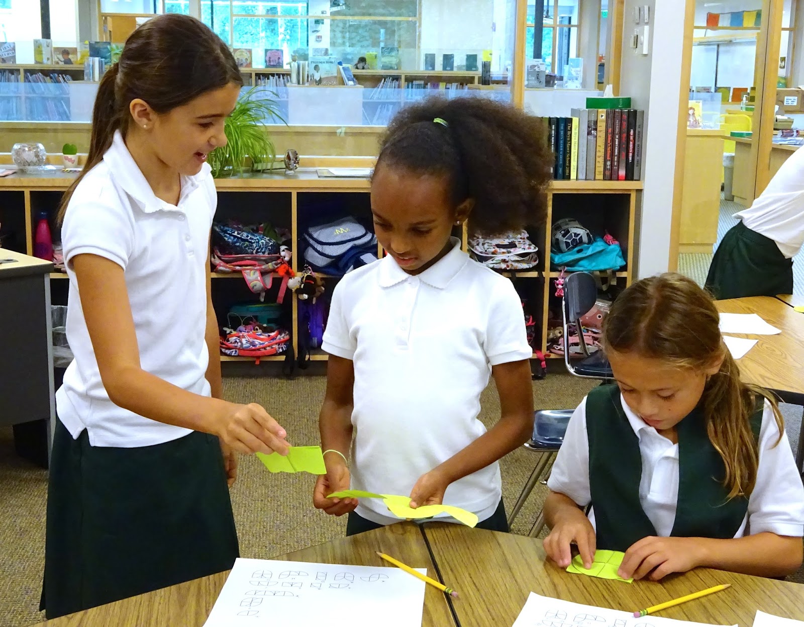 Back inside the pleasantly air-conditioned classrooms, the girls are expanding their understanding of math by folding paper into given shapes and becoming quite the problem solvers.